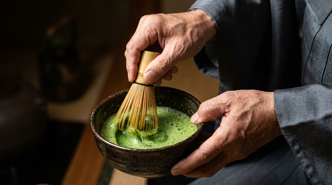 お客様お一人おひとりのために、その場で一服ずつ丁寧に点てます。温度・泡立て・濃さ、全てをその席に合わせて。
